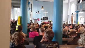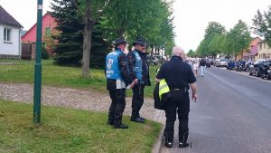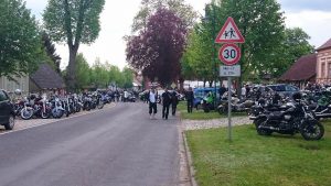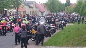 Zum 22. mal lud Pfarrer Ralf Schwieger zum Motorradgottesdienst nach Friedrichswalde. Vier von uns fanden die Zeit sich auf den Weg dorthin zu machen. Als wir gegen 12:30 Uhr vor Ort eintrafen, waren schon Hunderte da und es wurden immer mehr! Die Einweiser hatte damit alle Hände voll zu tun, um die Motorräder richtig zu positionieren. Nach einem kurzem Fußmarsch durchs Dorf, hin zur Kirche fanden wir alles was das Bikerherz erfreut, Bratwurst und Kaffee! Danach gleich noch den Pfarrer aufgesucht und ihn persönlich unsere Aufwartung gemacht. Der 22. Motorradgottesdienst in Friedrichswalde stand unter dem Motto: Für die Akzeptanz von Motorradfahrenden im Straßenverkehr, gegen Diskriminierung und Streckensperrung.