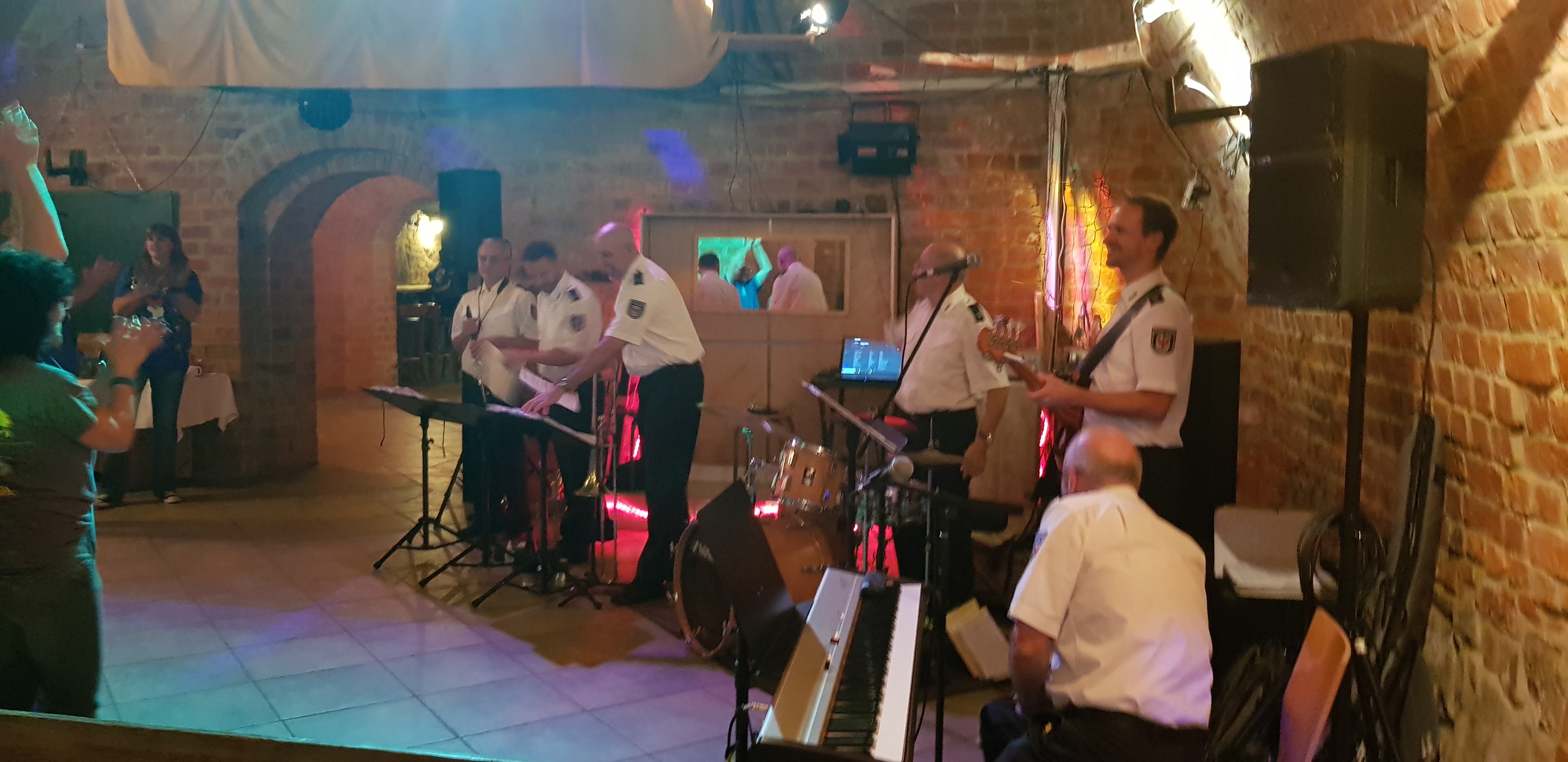 Cool war`s, mit ca. 50 Gästen, welche unserer Einladung zu unserer Jubiläumsfeier folgten. Cool war die Reaktion unserer Gäste auf das Schloss, auf unsere Ausfahrt mit Stopp am Schiffshebewerk Niederfinow und cool war der etwas andere Bikergottesdienst in der Kirche Friedrichswalde bei Pfarrer Ralf Schwieger! Hier konnten wir die Gelegenheit gleich nutzen und unseren Patenkindern vom Oberlinhaus Potsdam feierlich eine Spende überreichen. Stolz waren wir am Samstagabend! Hatte doch bis dahin alles prima geklappt. Die gemeinsame Fahrt bis nach Friedrichswalde verlief ohne Probleme. Der Pfarrer war vorbereitet und hielt einen Gottesdienst der alle beeindruckte und das in Begleitung einer Solistin welche Rockmusik mal anders aufführte. Die Touren anschließend fanden Zustimmungen, der Stopp am Schiffshebewerk kam gut an! Nutzten doch einige die Gelegenheit während einer Fahrt mit dem FGS „Luise“ durchs Hebewerk, das neuste von der Baustelle nebenan zu erfahren. Zurück im Schloss konnten alle ihr Lederbier genießen! Keine Zwischenfälle auf der Strecke, keine Liegenbleiber mit einem Schaden einfach nichts passiert! Hier schon mal unser Dank an ALLE dafür!!! Und der Abend? Tja, der war mal mit etwas anders wie gewohnt, so glauben wir.  Ein Auftritt der Big Band des Polizeiorchesters des Landes Brandenburg gab es bestimmt in solcher Runde noch nicht. Zumal diese keine Ahnung hatten vor welchem Publikum sie auftreten! Ein Bedürfnis unseres Presidenten war es, die Gründungsmitglieder welche noch dabei sind zum „Ritter“ zu schlagen! Die Augen und die Freude waren bei Jürgen, Andreas, Ulf, Ulli und Peter ganz deutlich zusehen.