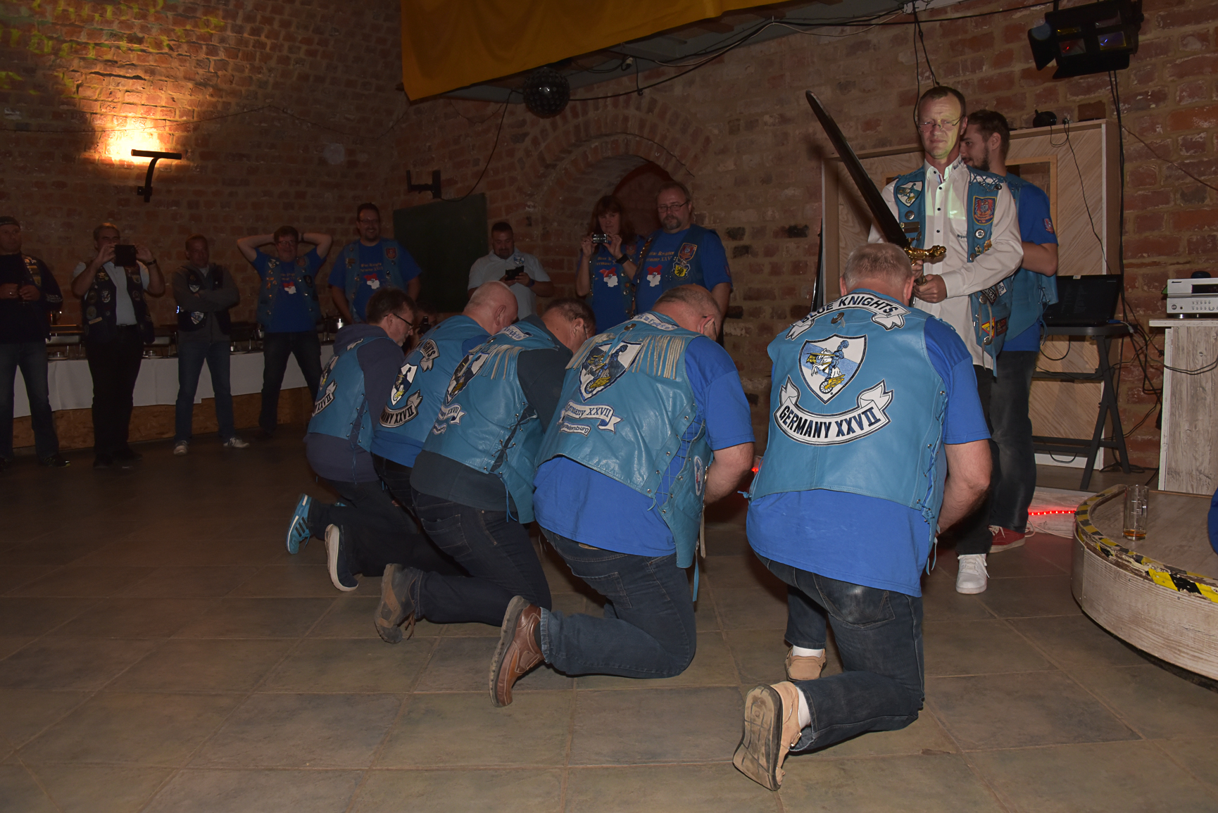 Cool war`s, mit ca. 50 Gästen, welche unserer Einladung zu unserer Jubiläumsfeier folgten. Cool war die Reaktion unserer Gäste auf das Schloss, auf unsere Ausfahrt mit Stopp am Schiffshebewerk Niederfinow und cool war der etwas andere Bikergottesdienst in der Kirche Friedrichswalde bei Pfarrer Ralf Schwieger! Hier konnten wir die Gelegenheit gleich nutzen und unseren Patenkindern vom Oberlinhaus Potsdam feierlich eine Spende überreichen. Stolz waren wir am Samstagabend! Hatte doch bis dahin alles prima geklappt. Die gemeinsame Fahrt bis nach Friedrichswalde verlief ohne Probleme. Der Pfarrer war vorbereitet und hielt einen Gottesdienst der alle beeindruckte und das in Begleitung einer Solistin welche Rockmusik mal anders aufführte. Die Touren anschließend fanden Zustimmungen, der Stopp am Schiffshebewerk kam gut an! Nutzten doch einige die Gelegenheit während einer Fahrt mit dem FGS „Luise“ durchs Hebewerk, das neuste von der Baustelle nebenan zu erfahren. Zurück im Schloss konnten alle ihr Lederbier genießen! Keine Zwischenfälle auf der Strecke, keine Liegenbleiber mit einem Schaden einfach nichts passiert! Hier schon mal unser Dank an ALLE dafür!!! Und der Abend? Tja, der war mal mit etwas anders wie gewohnt, so glauben wir.  Ein Auftritt der Big Band des Polizeiorchesters des Landes Brandenburg gab es bestimmt in solcher Runde noch nicht. Zumal diese keine Ahnung hatten vor welchem Publikum sie auftreten! Ein Bedürfnis unseres Presidenten war es, die Gründungsmitglieder welche noch dabei sind zum „Ritter“ zu schlagen! Die Augen und die Freude waren bei Jürgen, Andreas, Ulf, Ulli und Peter ganz deutlich zusehen.