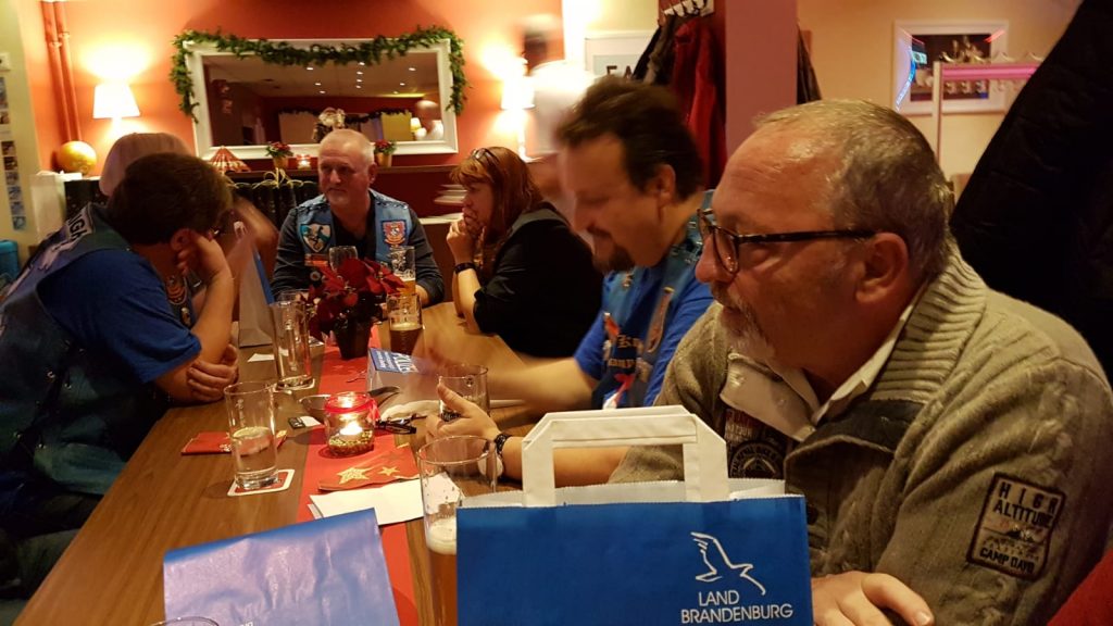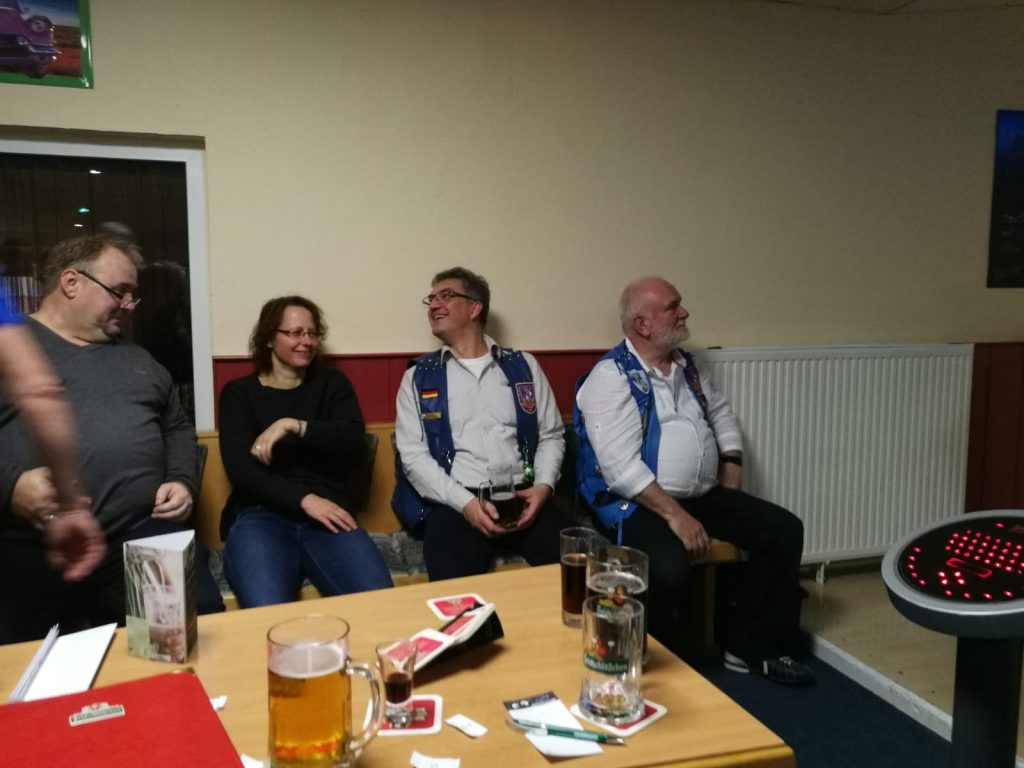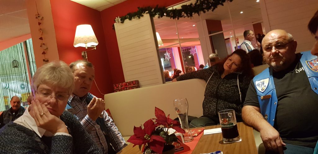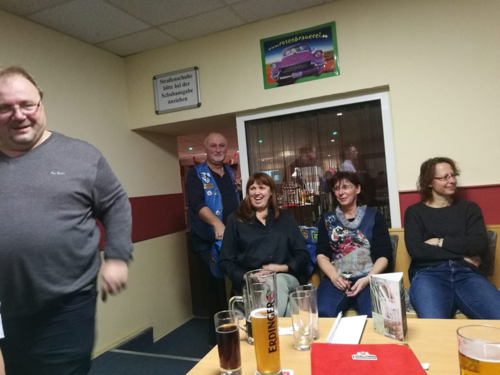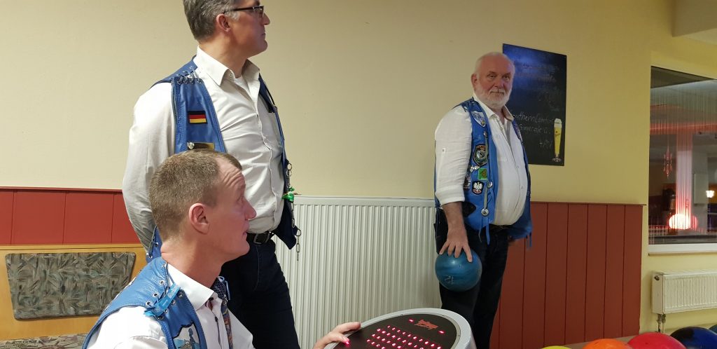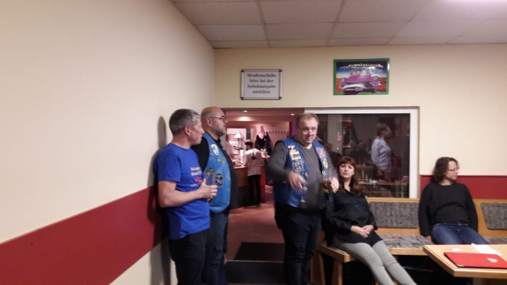 Am 08.12. zu 18:00 Uhr trafen wir uns zum Weihnachtsbowling / Weihnachtsfeier 2018. Als Veranstaltungsort wählten wir dieses mal auch wieder in Potsdam das Lokal „Märker Bowling“ aus. Ähnlich wie letztes Jahr kamen ganz schön Viele! War auch gut so, hatte unser Presi doch ne Menge zu erzählen und Geschenke hatte er auch noch bei! Es gab aber nicht nur positives zu berichten. Leider musste er verkünden, das Ulf (Höffi) uns verlassen und sich in Sachsen den XIX`ern anschließen wird. Ulf, dir alles Gute!!! Was hätte der Termin „Weihnachtsbowling“ für einen Sinn, ohne Bowling? Dies taten wir dann auch mit vollem Magen. Der eine hatte ne Ente in sich, ein Anderer eine Gans und … ! Zielwasser wurde auch schon ganz gut, zur Unterstützung der Treffsicherheit, zu sich genommen. Das war schon Lustig, die zwei Stunden. Bei mir hat das Zielwasser nicht viel geholfen! Bleibt die Frage: “ zu Viel oder zu Wenig?“ Ich hab leider keine Ahnung wer gewonnen hat, aber Spaß hatte ich reichlich! Wie war`s bei euch?