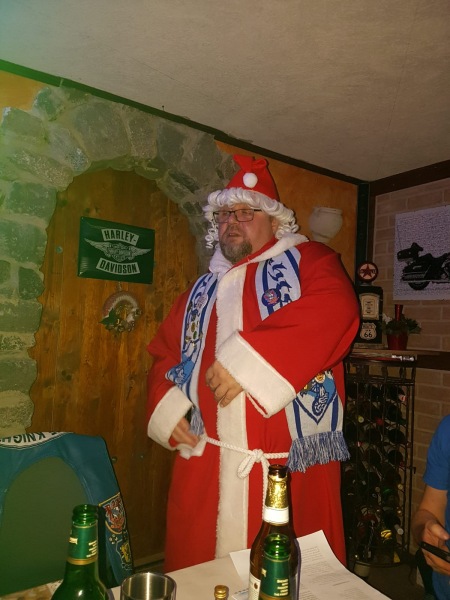 Dieses Jahr trafen wir uns wieder einmal zu einem Vereinsevent beim Presi. Nur dieses Mal kamen wir nicht auf Terrasse zusammen, sondern im Keller.Der war wieder bestens und originell Gestallte zum Thema „Weihnachtsfeier im Verein der „Blue Knights Germany XXVII Brandenburg e.V.“ Ihr könnt euch sicherlich Vorstellen, es wurde nicht nur Gegessen und Getrunken, wo von es reichlich und schmackhaft gab, nein es gab auch Geschenke, wir haben Schrott gewichtelt, es wurde getanzt und gesungen und der Weihnachtsmann war auch da!  Die Stimmung war wirklich im Keller und so richtig gut!