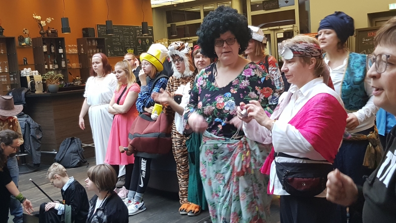 Dieses Jahr wurden wir zum Fasching ins Kino von Potsdam Babelsberg ins „Thalia“ eingeladen. Prima Idee wie sich herausstellte. Alle waren kostümiert und wir kamen als „Blue Knights“! Die Kostüme wurden alle präsentiert. Jeder stellte sich im Kostüm vor.   Anschließend führte uns eine lange Polonäse in den Kinosaal. „Der Zauberer von Oz“ wurde hier aufgeführt. Auch wir haben uns den Film nicht entgehen lassen und nahmen Mitten im Kinosaal Platz.